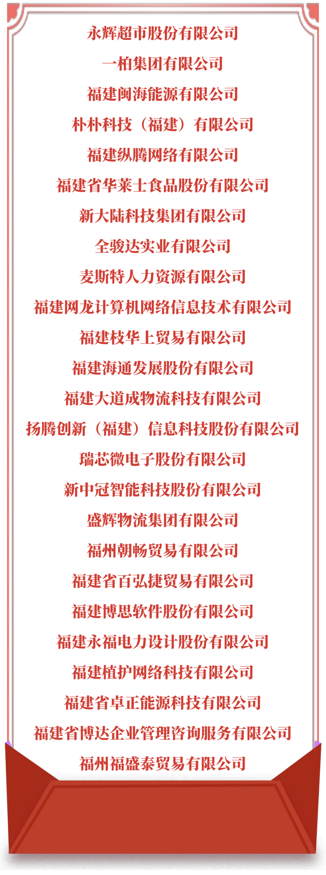 另有27家企业入围“2025福建省制造业民营企业100强”;25家企业入围“2025福建省服务业民营企业100强”;29家企业入围“2025福建省创新型民营企业100强”。